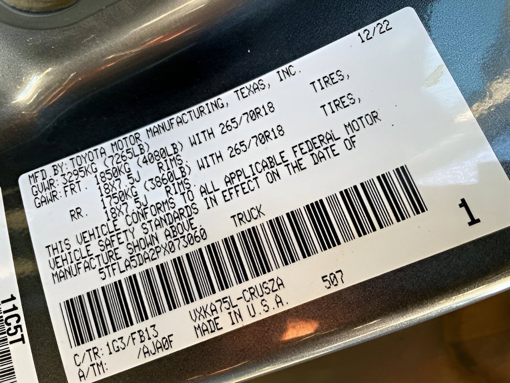 2023 Toyota Tundra SR5 Magnetic Gray Metallic 90,340 Miles 3.4L Twin Turbo V6 389hp 479ft. lbs., 4X4, 50 State Emissions, Adaptive Cruise Control, Automatic Climate Control Front Air Conditioning, BedStep, Dual Step Running Boards - Black, Front Automatic Emergency Braking, Front Pedestrian Automatic Emergency Braking, Intersection/junction Turn Automatic Emergency Braking, Intersection/junction Turn Pre-collision Warning System, Lane Centering Autonomous Lane Guidance, Lane Keeping Assist, LED Headlights, LED Pickup Bed Light, LED Taillights, Power Horizontal Pickup Sliding Rear Window, Proximity Entry System Multi-function Remote, Push-button Start, Rearview Camera System, Tow/Haul Mode, Toyota Audio Multimedia Infotainment, Trailer Brake Controller, Trailer Stability Control, Ventilated Disc Front Brake Type, Ventilated Disc Rear Brake Type, Wireless Android Auto Smartphone Integration, Wireless Apple CarPlay Smartphone Integration Discover power and versatility with this dark gray 2023 Toyota Tundra 4x4 SR5 Double Cab Pickup. Equipped with a potent 3.4L Twin Turbo V6 engine delivering 389hp and 479 lb-ft of torque, and a 10-speed shiftable automatic transmission, this truck is ready for work or play. Enjoy advanced safety features like Front and Intersection Automatic Emergency Braking, Lane Keeping Assist, and Pedestrian Detection for peace of mind on every drive. Stay connected and entertained with an 8-inch Toyota Audio Multimedia infotainment screen, wireless Apple CarPlay/Android Auto, SiriusXM, Bluetooth®, and Wi-Fi hotspot capability. Convenience features include dual step running boards, power sliding rear window, heated side mirrors, push-button start, and a trailer brake controller with 7-pin wiring for towing. The Tundra also offers adaptive cruise control, LED headlights, and a rearview camera for added confidence. Rugged yet refined, this Tundra is built to handle your toughest tasks and provide comfort along the way. Visit us today to experience Toyota reliability and capability firsthand.